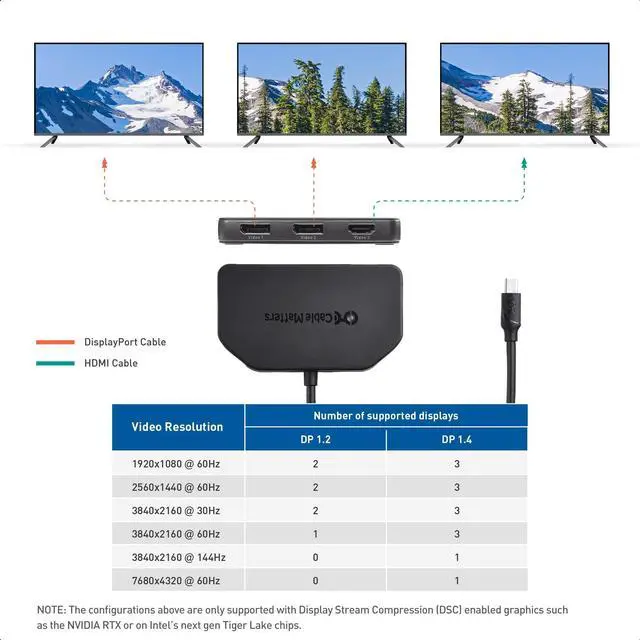 Plug in the included USB power cable if there is disconnecting / flickering / blinking issue ^^ Mini DisplayPort 1.4 hub contains a built-in magnet allowing it to be conveniently mounted to any metal computer case. Flexible 12 inch cable tail on the MST hub avoids strain on the computers Mini DisplayPort. ^^ 3 Port uni-directional Mini DP hub is an indispensable companion for the latest displays and Windows computers equipped with DisplayPort 1.4 support from AMD Radeon RX and Nvidia RTX graphics cards.