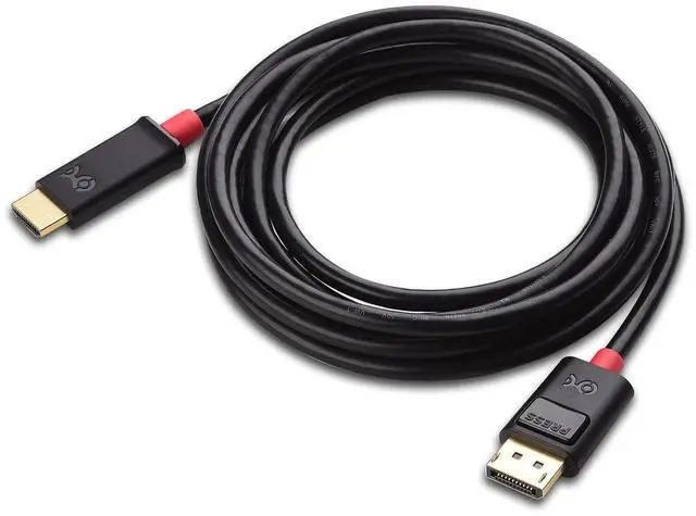High bandwidth HDMI to DisplayPort cable delivers video with brilliant detail and amazingly accurate color from a DisplayPort equipped Ultrabook, PC computer, or graphics card to a 4K capable UHD TV, monitor or projector with HDMI input ^^ 4K resolution support up to UHD 3840 x 2160 @ 30 Hz with this Display Port to HDMI cable; HDMI to Display Port supports High Definition Audio for a full range of audio types, including SACD, DVD-Audio, DTS-HD Master Audio, and Dolby TrueHD; High performance HDMI to DP cable operates in one direction from a computer, laptop of graphics card to a display with HDMI (not the reverse) ^^ Windows compatibleDisplay to HDMI cable for connecting a computer to a UHD TV for video streaming or gaming; DisplayPort to HDMI cable connects and configures your 4K monitor for an Extended Desktop or Mirrored Displays; No external drivers or power are required for this DisplayPort HDMI cable ^^ DP to HDMI cable combines gold-plated connectors with molded strain relief resist corrosion, provide durability and improve the signal transmission; Foil and braid shielding provides protection against EMI and RFI noise.