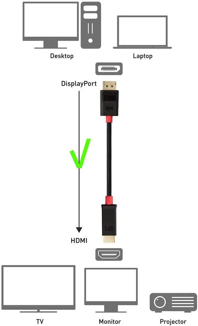 HDMI DisplayPort cable connector with latches provides a secure connection with a release button that must be depressed before unplugging to prevent accidental disconnections ^^ HDMI to Display Port cable is compatible with 4K monitors from BenQ, Dell, HP Envy, LG Electronics, Philips, Samsung, Viewsonic and 4K UHD TVs from Samsung, Seiki, Sony and Vizio