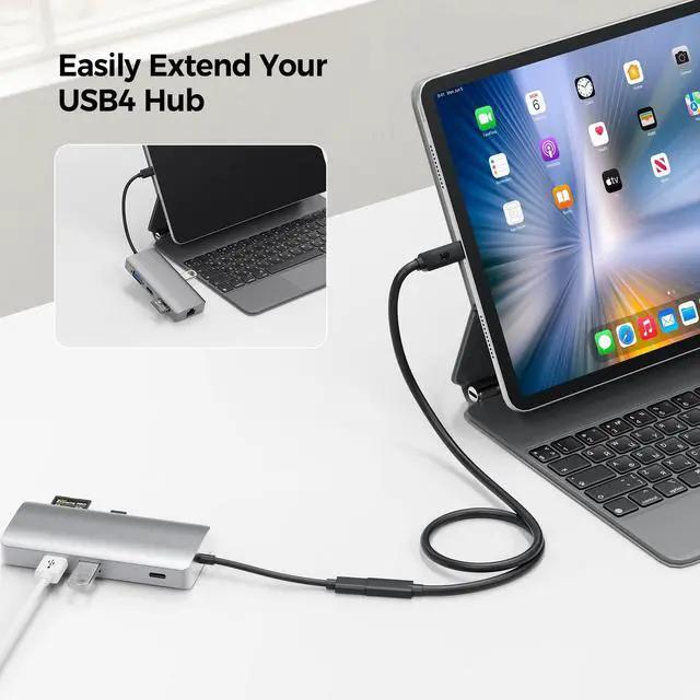 USB-C / Thundertbolt 4 Extender: Extend your USB-C devices with this Thundertbolt 4 compatible USB-C extension cable; Simply connect this Type C extension cable to the end of a standard USB-C cable or Thunderbolt cable to form an instant cable extension
