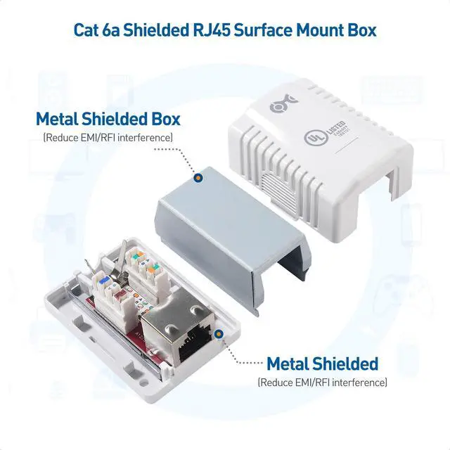 Cat6A Performance: The rj45 surface mount box supports Cat6A Ethernet cabling for unmatched 10Gbps performance; Superior shielding prevents network interference issues, enabling effortless connectivity ^^