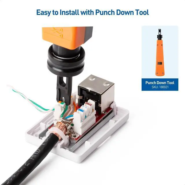• Finish The Connection: The surface mount keystone ethernet jack terminates Ethernet cable runs into a small box with a built-in Ethernet jack; Mount the box on a desk or near equipment to easily add an Ethernet network connection to a device