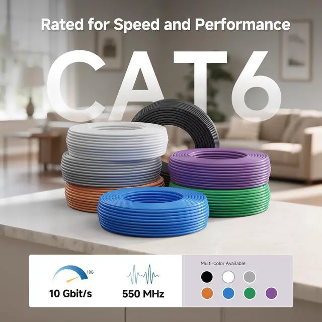 MHz Bandwidth: This solid, durable Cat6 Ethernet wire supports up to 550 MHz bandwidth for fast data transfers. Perfect for servers, cloud computing, PoE devices like video surveillance, and HD video streaming.