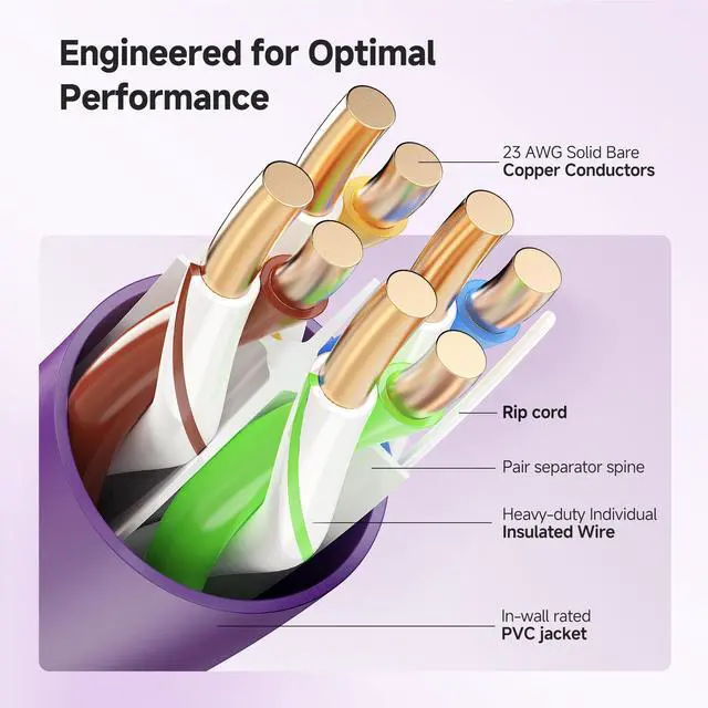 ^^ Pure Copper Conductors: Crafted with bare copper conductors for enhanced cable performance, this Cat 6 bulk Ethernet cable meets or exceeds TIA/EIA 568-C. 2 standards. The solid copper build ensures reliable data transfer, supports Power over Ethernet (PoE, PoE+, PoE++), and complies with communication cable specifications. ^^ High-Speed 550