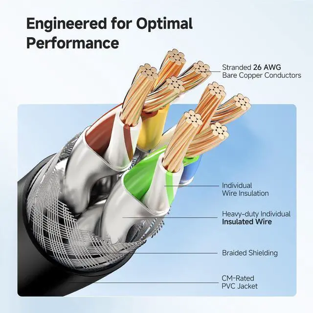 Ethernet Cable: Surpassing Cat6, Cat6a, and Cat7 cables, our Cat 8 cable boasts superior bandwidth and distance capabilities. As a gaming ethernet cable, it is a forward-looking investment, fully backward compatible with Cat 6, Cat 6A, and Cat 5e cables ^^ Enhanced