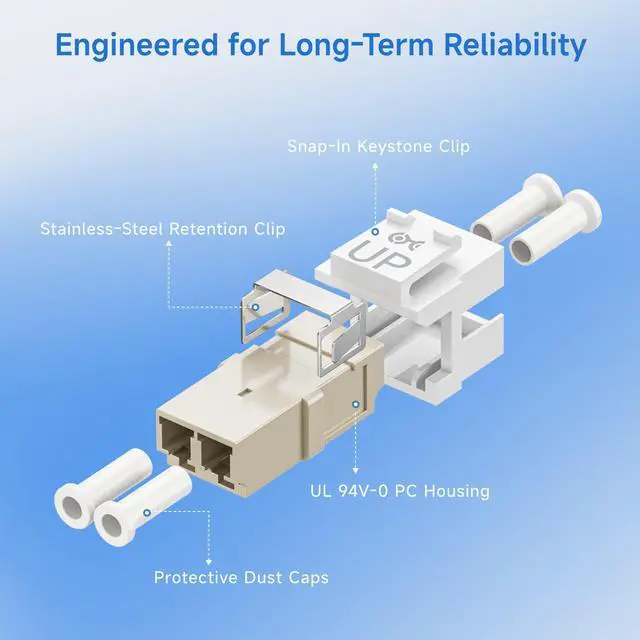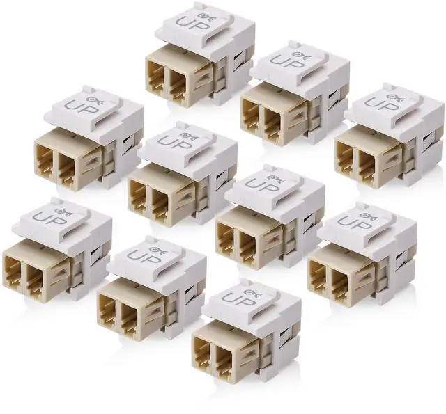 ^^ Flexible Deployment Options: The Cost-effective 10-pack LC keystone jack inserts provides convenient spares for last-minute cable connections. These reusable LC fiber jack modules include protective caps and can be easily disconnected and relocated during network upgrades.
