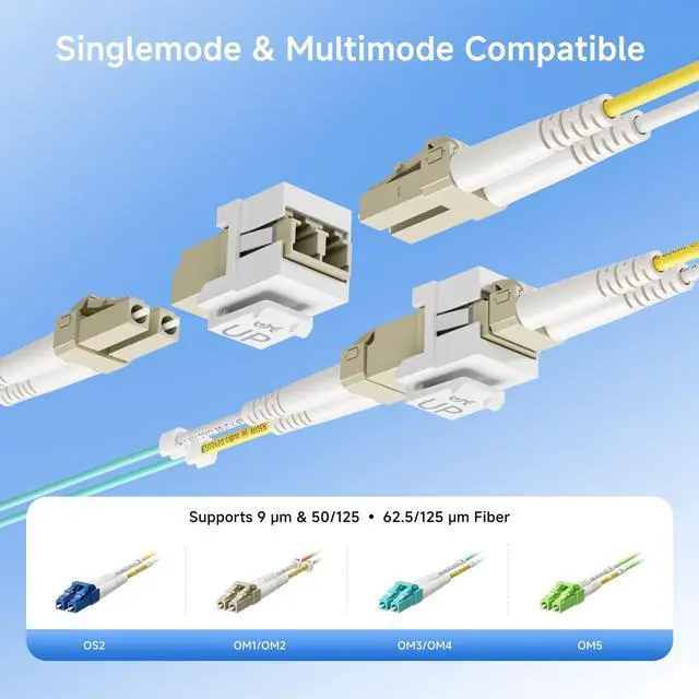 Wide Fiber Compatibility: LC fiber keystone insert is compatible with Single Mode OS2 9-micron fiber and Multimode OM1, OM2, OM3, and OM4 50-micron or 62.5 -micron fiber patch cords. Fits a standard opening in a patch panel or wall plate for keystone jacks.