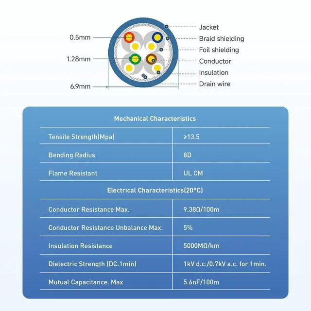 Compliance: UL listed (E485863) Cat 6a Ethernet cable bulk meets or exceeds TIA/EIA 568-C. 2 and complies with UL 444 specifications for communications cables. Compatible with shielded keystone jacks, patch panels, and modular plugs, this shielded Cat 6a bulk ethernet cable ensures professional-grade performance for residential or commercial installations.