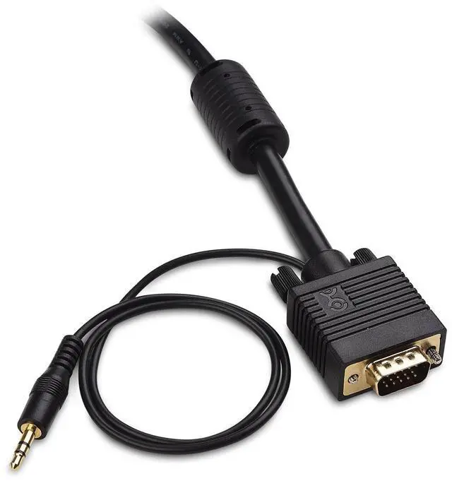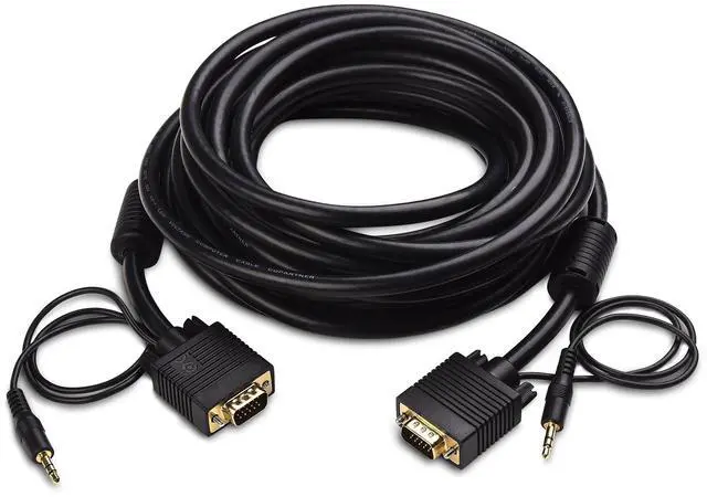 High performance computer monitor cable connects a VGA (Video Graphic Array) equipped computer to a monitor or projector with 15-pin VGA port (also known as RGB, DB-15, DE-15, HD-15, HDB-15 or D-sub 15) for video editing, gaming, or video projection; The VGA to VGA cable supports both video and audio with a single cable ^^ Premium VGA cables support resolutions at 800x600 (SVGA), 1024x768 (XGA), 1600x1200 (UXGA), 1080p (Full HD), 1920x1200 (WUXGA), and up for high resolution LCD and LED monitors; The RGB cable supports 3.5 mm stereo audio pass-through ^^ The VGA cord engineered with molded strain relief connectors for durability, grip treads for easy plugging and unplugging, and finger-tightened screws for a secure connection ^^ Gold-plated connectors resist corrosion, provide rigidity, and improve the signal performance of the VGA male to male cable ^^ Foil & braid shielding of the PC cable minimizes crosstalk, suppress noise, and protect against electromagnetic interference (EMI) and radio frequency interference (RFI)