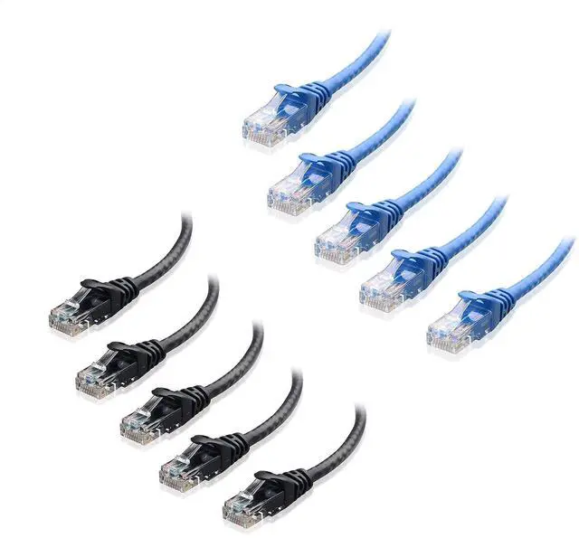Expand your network with the Cable Matters Cat6 Ethernet cable bundle, which includes a 5-pack of Cat6 Ethernet cord in Blue and a 5-pack of Cat6 Ethernet cords in Black