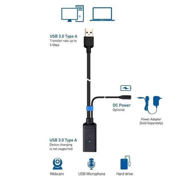 Home & Office: Use this USB extension cable with power to extend connections for VR gear, webcams, storage devices, printers, and more across a room. This active USB 3.0 extension cable delivers long-distance data transmission and broad compatibilityideal for home workstations, gaming setups, and professional environments.