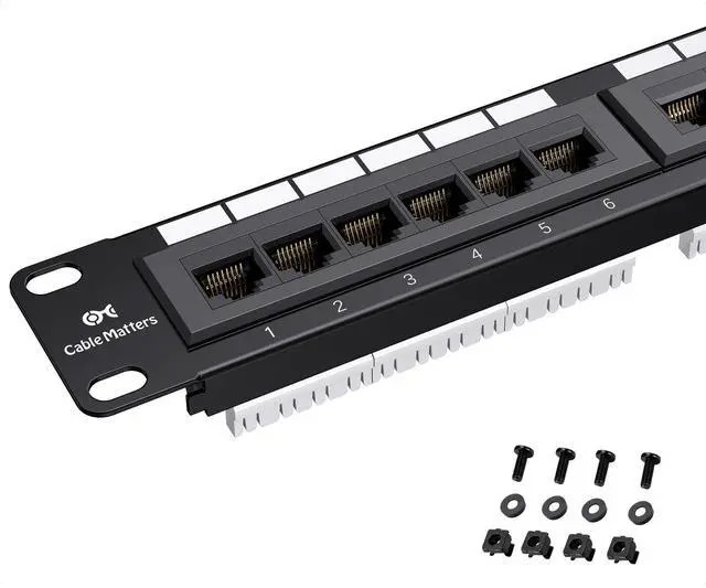 Patch Panel: This robust 24-port Cat6 patch panel supports high-speed Ethernet networks, designed for Cat6 cabling, but also backwards compatible with Cat5e and Cat5 cables. Ideal for Gigabit Ethernet switches, 10Gb network switches, and high-performance networking setups.