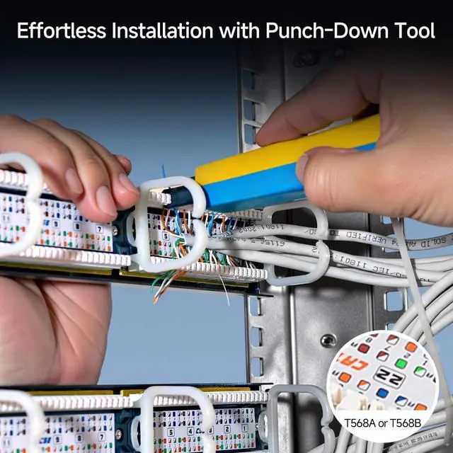 Universal Racks: This 1U patch panel fits easily into 19" racks, cabinets, or wall-mount brackets, offering a 1U ( 1.75" ) standard height for flexible installation. Whether you're setting up a home office or large enterprise network, the 24-port cat 6 patch panel supports all your wiring needs. ^^ Reliable, High-Quality