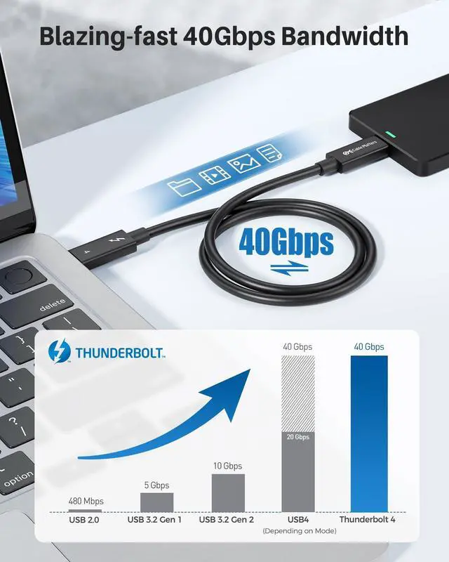 Charging: This certified Thunderbolt 4 cable supports blazing-fast 40Gbps data transfer and Power Delivery 3.0 up to 100W. Enjoy high-speed data, video, and charging through a single cableperfect for USB4 and Thunderbolt 4 laptops, docks, monitors, and eGPUs. ^^ Supports Dual 4K or Single 8K