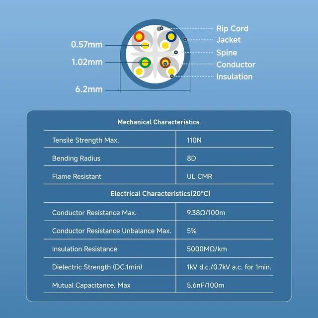 ^^ Riser-Rated Safety: The riser-rated (CMR) jacket provides superior fire resistance, making this ethernet cable spool suitable for installation between floors in residential or commercial buildings. Its safety rating offers peace of mind for professional network installations in multi-story environments.