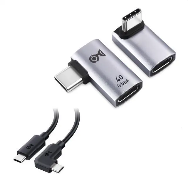 Cable Matters 20Gbps 1-Pack Right Angle USB C Cable 6ft, Support 8K 30Hz & 4K 120Hz Video, 240W Power Delivery & Combo-Pack 40Gbps Right Angle USB-C Adapter Kit with 240W PD in Black