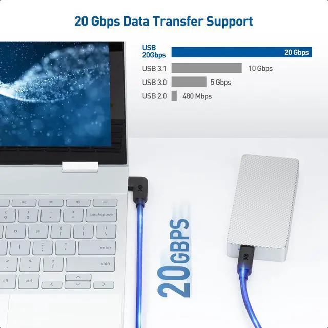 Find the perfect angle with this USB C to USB C 90 degree cable; 90 degree USB C cable features a right-angle connector on one end, ideal for a USBC charging cable or data cable for a more secure connection