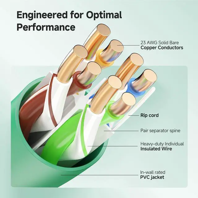 MHz Bandwidth: This solid, durable Cat6 Ethernet wire supports up to 550 MHz bandwidth for fast data transfers. Perfect for servers, cloud computing, PoE devices like video surveillance, and HD video streaming.