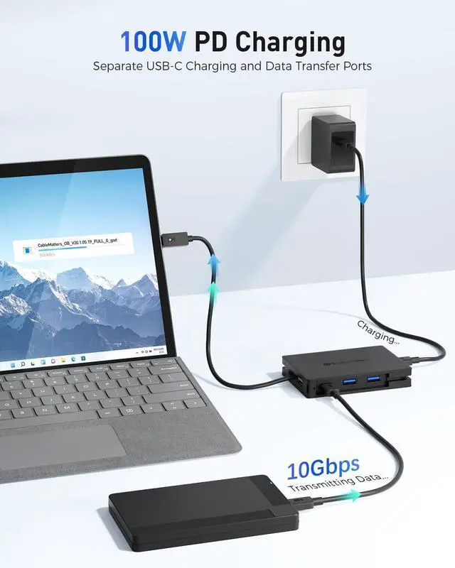PD Charging: USB-C multiport adapter with dual DisplayPort & PD features pass-through USB-C Power Delivery charging supporting up to 100W charging; Power and charge your device with seamless pass-through power over a single cable using this USB4 dock dual DisplayPort ^^ 40Gbps Video + Data Combined