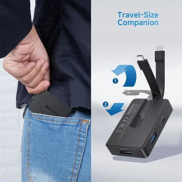 ^^ 100W Power Delivery: Charge your devices efficiently with 100W pass-through USB-C Power Delivery. This feature ensures your laptop or tablet remains charged while using the hub, supporting continuous power even during heavy usage. ^^ Portable Design with