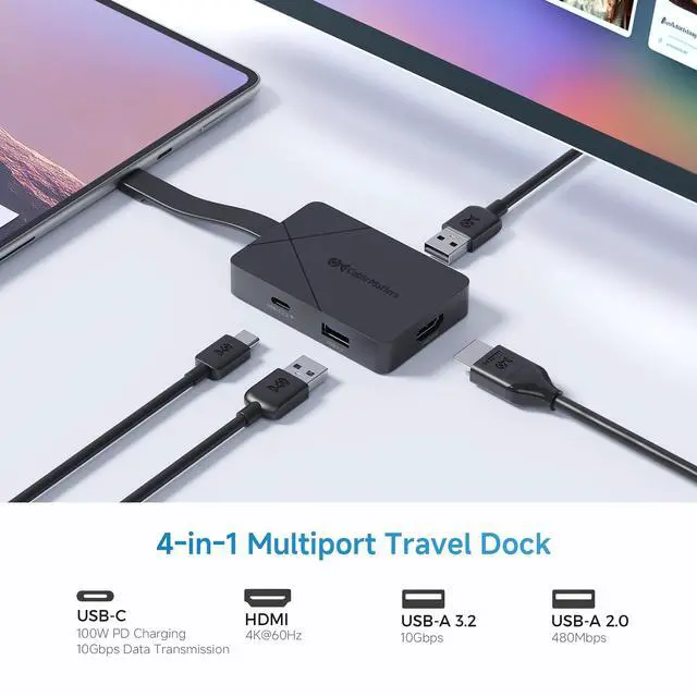 Connectivity: This foldable USB C multiport adapter expands your device's connectivity options. Add an 4K@60Hz HDMI video port, two USB-A ports, and one USB-C port with pass-through charging to any Thunderbolt 4, Thunderbolt 3, USB 4, or USB-C device.