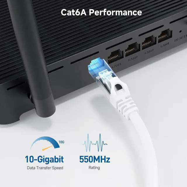 • Cat6a performance at a Cat 5e price but with higher bandwidth; SSTP/SFTP (Screened Foiled Twisted Pair) shielding can prevent electromagnetic interference (EMI) and reduce crosstalk noise over the Cat 6a Ethernet cable