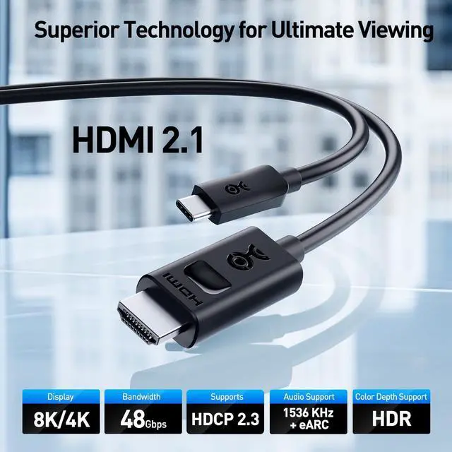 Technology: Upgrade your setup with the Cable Matters USB C to HDMI 2.1 cable, featuring the latest HDMI 2.1 standard for high-definition connectivity. This HDMI to USB C cable supports stunning 8K@60Hz and 4K@240Hz video resolutions, ideal for high-end displays and gaming setups.