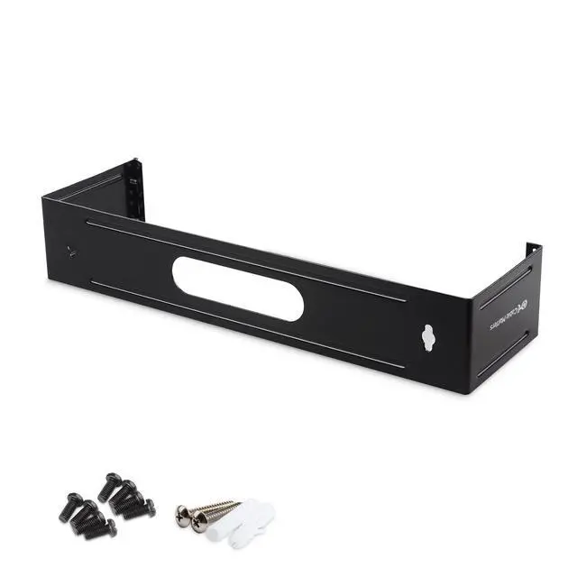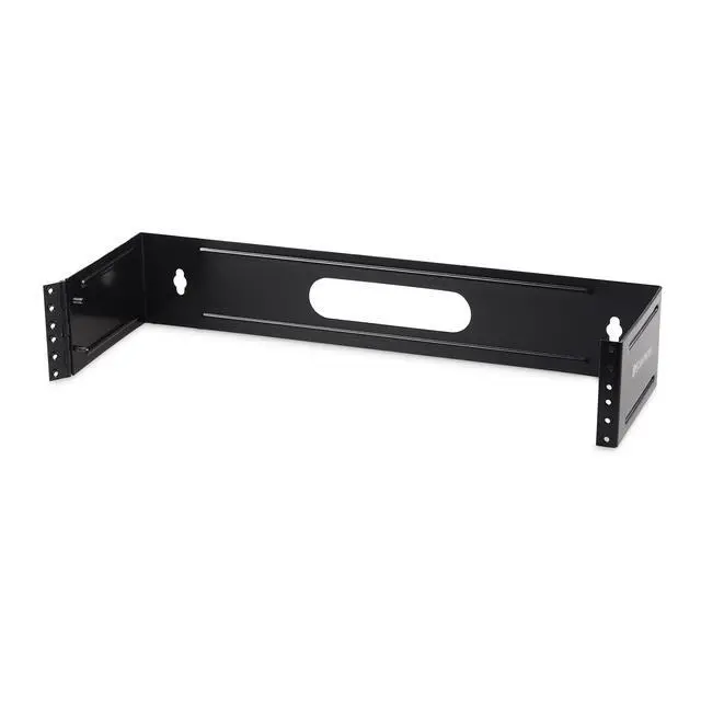 Sturdy panel bracket for wall-mounting standard 19 patch panels with 2U ( 3.5 ) height ^^ Space-saving patch panel wall mount provides an alternative to installing a rack or cabinet in tight spaces ^^ Hinged design for left or right mounting with 6 installed depth and open frame for easy access ^^ Solid-metal with horizontal reinforcement ribs installs easily with wall-stud screw keyholes ^^ Great solution for both small business networks and data center applications