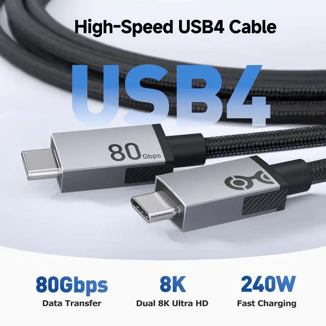 Performance (80Gbps): This premium USB4 cable delivers up to 80Gbps bandwidth for next-generation data transfer, display output, and power delivery. Fully compliant with USB4 V 2.0 specifications and compatible with Thunderbolt 5, this USB-C to USB-C cable is engineered for high-speed storage, advanced workflows, and professional-grade devices.