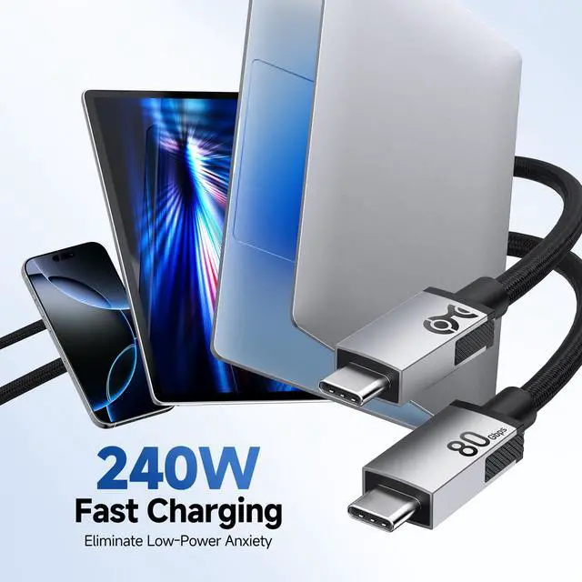 ^^ Ultra-High-Resolution Display Support: This 240W 80Gbps USB C cable supports DisplayPort Alternate Mode (DP Alt Mode) for cutting-edge video output up to 8K@120Hz or 4K@480Hz when supported by the host device and display. Ideal as a USB C monitor cable for gaming, content creation, and high-refresh-rate professional displays requiring smooth motion and sharp detail. ^^ 240W