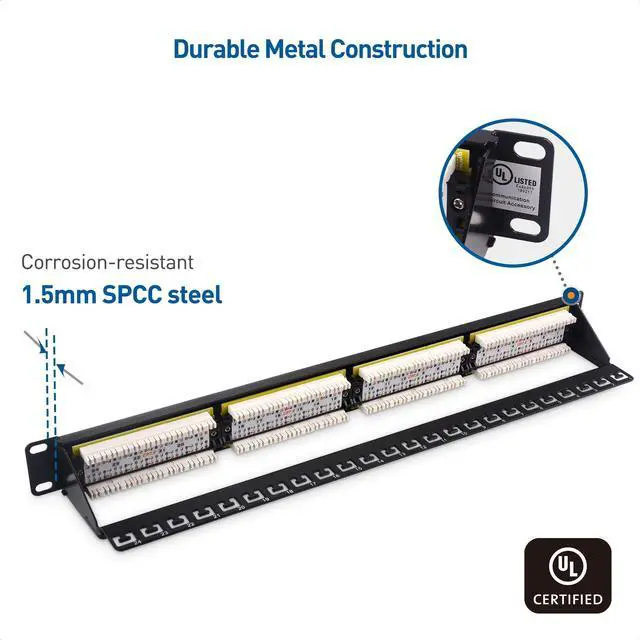 Fire Safety Standards: This UL listed network patch panel meets UL fire safety requirements (E486099), ensuring safe and reliable operation. The included D-rings and cable ties make cable management easy, keeping your installation neat and organized.