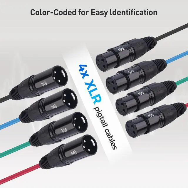 Cable Connection: The kit includes 2 pigtail boxes; One box with 4x XLR male pigtail cables and 1x breakout box with 4x XLR female pigtail cables; This snake audio kit provides the ultimate flexibility for every use case ^^