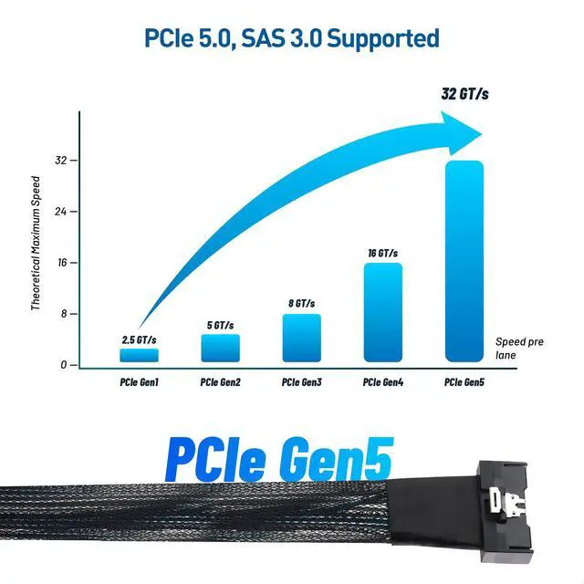 Key Protocol Support: This SFF-TA-1016 cable supports popular data protocols in high performance computing and data center applications, including PCIe 5.0, SAS 3.0, and Ethernet at unparalleled throughputs ^^