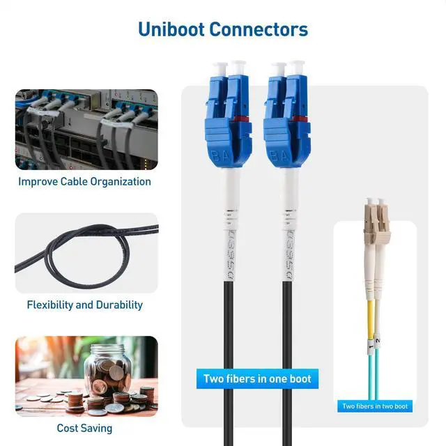 Innovative Uniboot Design: This jumper optical patch cord features a cutting-edge uniboot design which supports duplex transmission over a single cable; Reduce cable clutter where space matters in a compact datacenter ^^