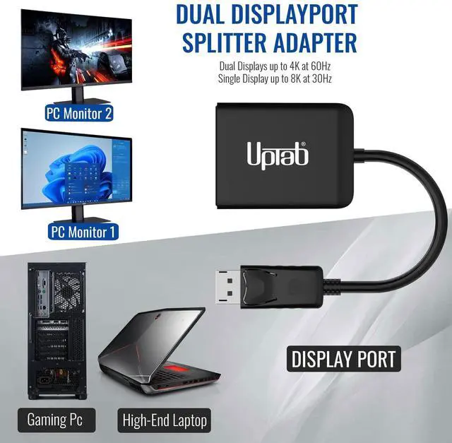 High-Performance Adapter: Unlock the potential of your setup with this high-performance DisplayPort to 2-Port DisplayPort adapter. It delivers ultra-high-definition video output, enabling you to experience exceptional clarity and detail. Whether you are working on complex graphic design projects, engaging in immersive gaming, or enjoying high-definition video playback, this adapter ensures smooth and reliable performance, enhancing your overall productivity and entertainment experience. ^^ Multi-Stream Transport (MST)