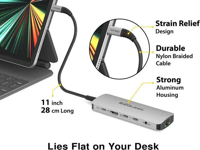 [ULTIMATE DISPLAY WITH 4K HDMI HUB] This USB-C Hub will enhance your setup Extended and Mirror Mode on your External Displays with stunning clarity and immersive sound using USB C Hub HDMI port. Enjoy HDR 10 and HDCP Support for Enhanced Visuals. Operate HDMI 4K (60Hz on DP1.4 or 30Hz on DP 1.2). (PLEASE NOTE: USB-C Ports will not operate a monitor). Elevate Productivity and Simplify your Setup with this Essential USBC Hub.