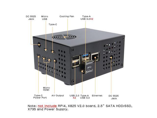- Important Note: The X825 V2.0 2.5" SATA Shield, X735 Power management board, Raspberry Pi 4 or HDD/SSD need to be purchased seperately