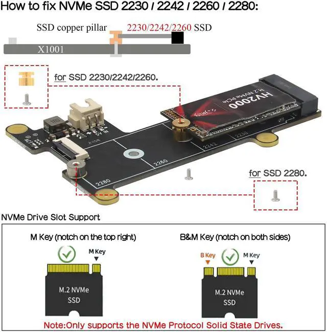 SSD Supported: Support M. 2 KEY-M NVMe SSD 2230/2242/2260/2280 length installation. Comes with SSD copper pillar for 2230/2242/2260 SSD installation ^^ User