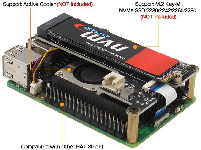 Compatibility: Pi 5 PCIe M. 2 HAT only compatible with Raspberry Pi 5 SBC (NOT include Raspberry Pi 5), Model: X1001/H505 ^^ M2 NVMe Key-M