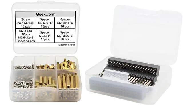 Len: 5.5 mm), 2 pcs 2x20 Pin Header, 2 pcs 1x20 Pin Header ^^ Packing List 2: 4 x M 2.5 x12+6 mm Spacers; 16 x M 2.5 x 5 mm Screws; 16 x M 2.5 Nuts; 16 x M 2.5 x5 +5 mm Spacers; 16 x M 2.5 x11 mm F/F Spacers; 16 x M 2.5 x11+6 mm Spacers; 16 x M 2.5 x20+6 mm Spacers ^^