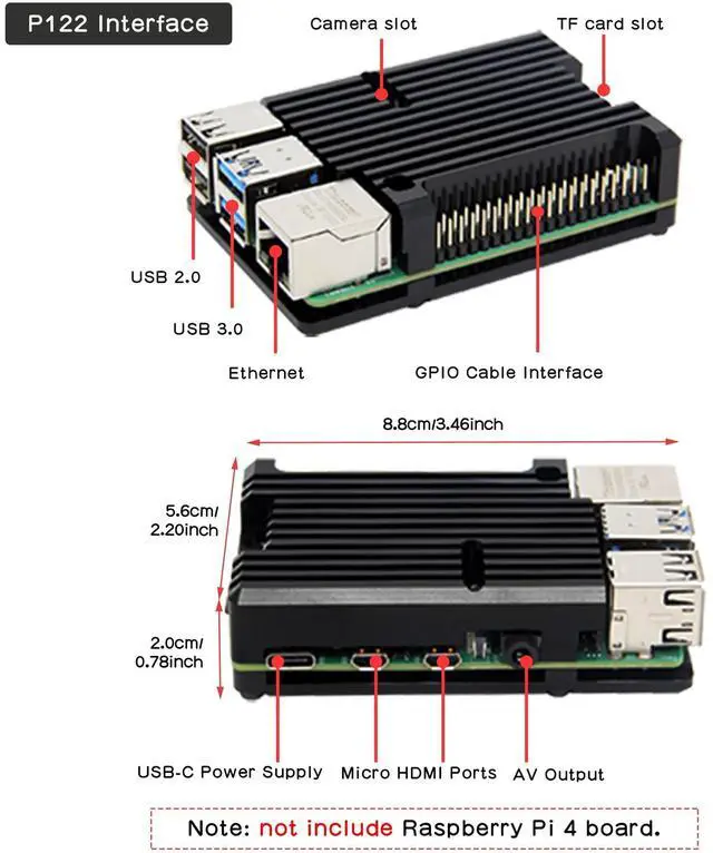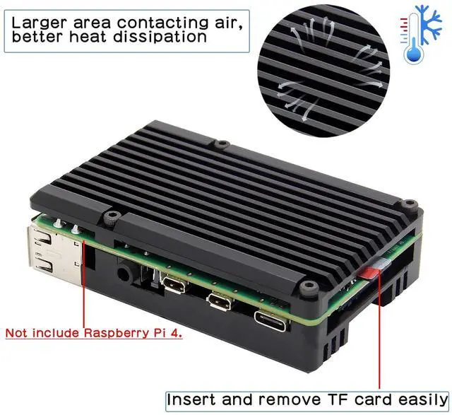 Geekworm Pi 4 armor case, aluminum alloy metal case with power adapter specially designed for the Raspberry Pi 4 Computer Model B (1GB/2GB/4GB/8GB) ^^ All ports and slots of the aluminum alloy case can match with Raspberry Pi 4 Model B computer perfectly; Add 2pcs 2x20 Female Headers to extend the GPIO pin and insert GPIO cable ^^ With 3 pieces thermal pads (the thickness is only 0.5 mm) to touch the shell body to dissipate heat. You can also use the CPU grease (not included) to get better heat dissipation.