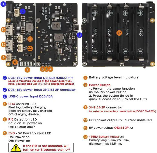 Compatibility: Pi 5 UPS compatible with Raspberry Pi 5 16B / 8GB / 4GB;