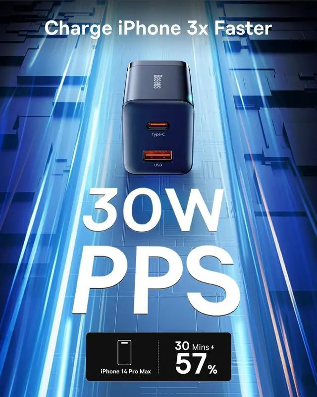 Genuine 30W PD Fast Charging: This USB charger block was tested to take only 30-min to charge an iPhone 15 Pro Max up to 60%