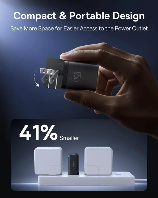 Compact & Portable: 41% smaller than the original 65W charger, the USB-C charging block is sleek, portable, and perfect for travel. Its lightweight form wont add bulk to your bag while providing fast, reliable charging on the go.