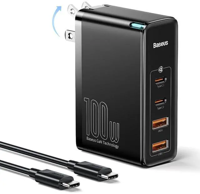 USB C Charger, Baseus 100W 4-Port GaN II Wall Charger, USB C Fast Charger Block with 2A+2C Ports for iPhone Series, Galaxy, MacBook, iPad, Laptops, AirPods, Apple Watch, Black