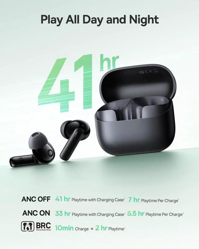Battery Life: Get up to 7 hours per charge and 41 hours total playtime (ANC off) with these in-ear ear buds providing all-day power and keeping you going without interruptions. For extended playtime, you can speed charge an extra two hours in just 10 minutes ^^