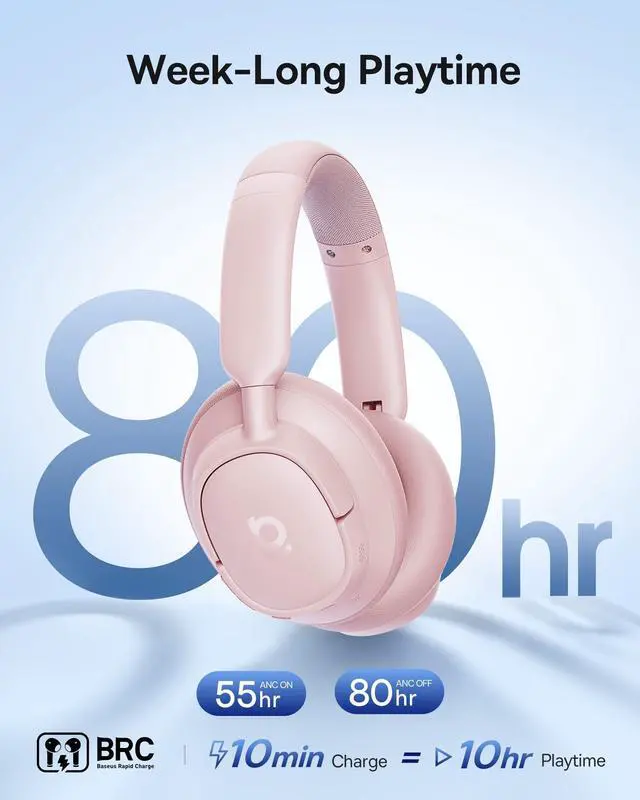 ^^ [Week-Long Playtime]: Stay unplugged for daysup to 80 hours with ANC off (55 hours with ANC on). Just 10 minutes of quick charge gives you 10 hours of playtime, so you're always ready to go. ^^ [5-Mic