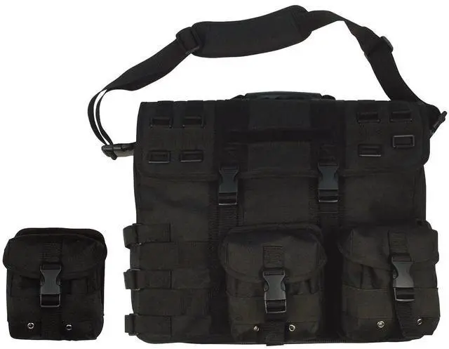 600 Denier Polyester With Lining ^^ Removable Padded Sleeve For Laptop ^^ Large Main Compartment With Flap ^^ MOLLE Compatible ^^ Zippered File And Organizer Compartment With ID Holder