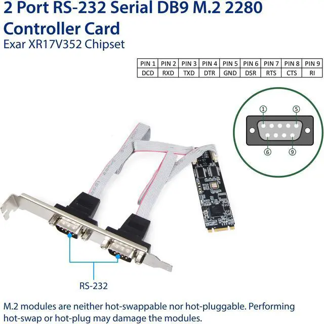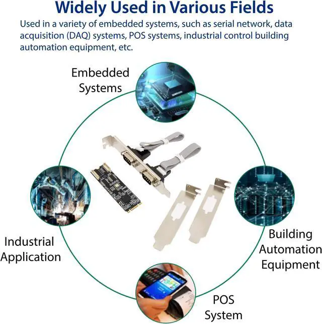 The IOCrest SI-ADA15069 lets you add 2 RS-232 serial ports to your embedded computer thought a free M 2 slot To be used in applications such as serial Attached devices serial networking/monitoring equipment data acquisition system POS terminal and industrial PC add-on I/O cards-serial/USB and embedded systems -for I/O expansion