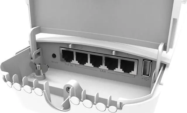 OmniTik 5 ac The OmniTik 5 ac from Mikrotik features five Gigabit Ethernet ports and support for 802.11 ac. Its equipped with a powerful 720MHz CPU, 128MB RAM, high power 1, 300mW 802.11 a/n/ac Dual Chain wireless (support for AC as well as backwards compatible with regular 802.11 a/n CPE) and comes with a new design weatherproof outdoor enclosure, two integrated 7.5 dBi 5GHz omni antennas, a power supply, a PoE injector and a mounting kit.